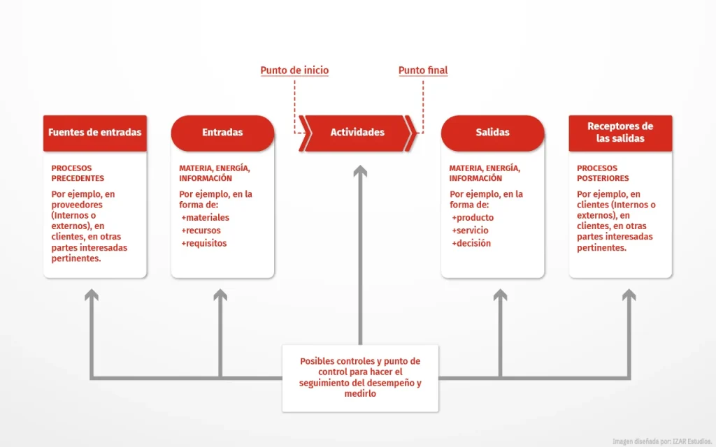 Representación esquemática de los elementos de un proceso realizado con la